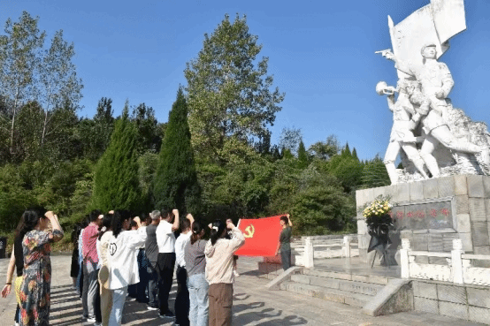 在虎头山烈士陵园,全体师生高唱中华人民共和国国歌,向烈士默哀三分钟,全体党员重温入党誓词,接着向保家卫国的烈士敬献花圈。仪式结束后,教师们认真聆听工作人员讲解1945年发生在舞钢虎头山上这段英勇悲壮的抗日故事,师生们被抗日烈士的英雄事迹所感动。在二郎山爱国主义教育基地,跟随着工作人员的讲解再一次深切感受到残暴的日军在中国大地上所犯下的滔天罪行以及中国人民不畏牺牲、英勇反抗的伟大抗日精神。