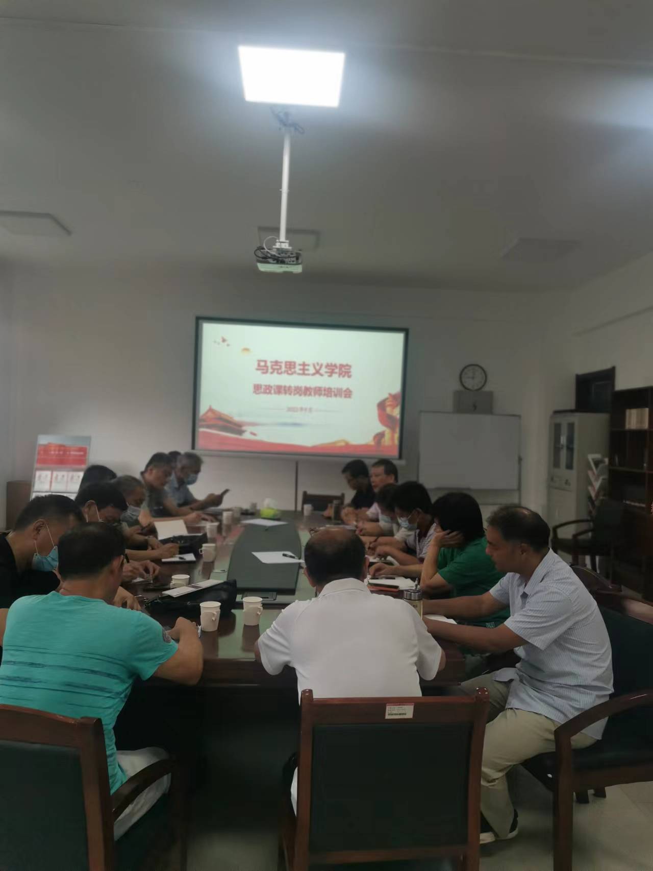 为进一步提升思政课转岗教师教学能力,更好胜任思政课教师岗位要求,9月16日上午,tyc122ccvip在美荟楼423会议室召开了思政课转岗教师培训会。会议由tyc122ccvip党总支书记王世翔主持,转岗教师及马院班子成员参加会议。