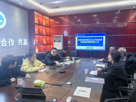 为深入贯彻落实习近平总书记关于社会工作的重要论述,推动高校学科优势与地方社会治理需求深度对接,助力全市治理体系和治理能力现代化建设,12月4日,平顶山市委社会工作部副部长徐星、行业协会商会科科长李猛、志愿服务中心副主任柳青莅临公司调研指导平顶山市社会工作学会建设筹备工作。公司领导班子成员、社会工作学科骨干教师代表、平顶山市社会工作机构代表参加会议。